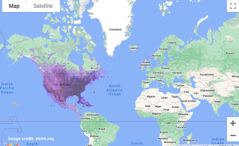 Calliope Hummingbirds breed in open coniferous woodlands from British Columbia to Utah and parts of central California. During summer and migration to and from Mexico, we can see Calliope Hummingbirds at flowering bushes and feeders.